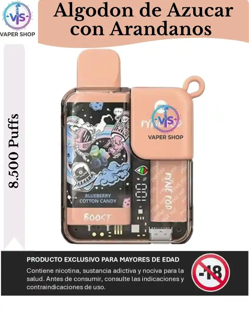 Experimenta el viaje de vapeo definitivo con el Blueberry Cotton Candy – Pyne Pod Boost 8500. Este dispositivo innovador transforma cada calada en una aventura deliciosa, reminiscentes de un carnaval lleno de dulce algodón de azúcar y arándanos maduros. Con una impresionante capacidad de 8500 caladas y tecnología avanzada de potenciación de sabor, este vapeo está diseñado para aquellos que exigen calidad y conveniencia en su experiencia de vapeo. Especificaciones Inigualables El Pyne Pod Boost 8500 no es solo otro vape desechable; es un dispositivo de alto rendimiento lleno de características excepcionales: Contenido de E-líquido: 10ml para un vapeo prolongado sin necesidad de recargas frecuentes. Nivel de Nicotina: Un potente 50mg para un golpe satisfactorio ideal para vapeadores experimentados. Puffs Por Dispositivo: Hasta 8500 puffs aseguran que puedas disfrutar de tu sabor favorito durante días. Batería Recargable: Una robusta batería de 550mAh que se puede cargar fácilmente a través de USB-C. Batería y Pantalla de Líquido: Siempre sabe cuándo es el momento de recargar o rellenar. Mecanismo de Aumento de Sabor: Asegura que cada calada sea tan sabrosa como la primera. Bobinas Duales: Proporciona caladas suaves y consistentes para una experiencia de vapeo premium. Disfrute del sabor Imagina un sabor que combina la dulzura azucarada del algodón de azúcar con la frescura jugosa de los arándanos. Eso es exactamente lo que obtienes con el Blueberry Cotton Candy – Pyne Pod Boost 8500. Cada calada ofrece una suavidad dulce como un caramelo que te transporta de vuelta a tus recuerdos favoritos de la infancia, haciéndolo perfecto para disfrutar todo el día sin ningún desorden. Diseño elegante y portátil El diseño del Pyne Pod Boost 8500 no se trata solo de estética; se trata de funcionalidad. Este dispositivo compacto es fácil de llevar, lo que lo convierte en el compañero perfecto para cualquier situación. La batería y la pantalla de líquido proporcionan información esencial de un vistazo, asegurando que te mantengas informado sin interrupciones. Además, la función de carga USB-C significa que puedes seguir vapeando sin preocuparte por quedarte sin batería. ¿Por qué elegir el Pyne Pod Boost 8500? Si aún te preguntas por qué el Blueberry Cotton Candy – Pyne Pod Boost 8500 debería ser tu próxima compra, aquí hay algunas razones convincentes: Sabor por Días: 10ml de e-líquido y 8500 caladas para una experiencia dulce duradera. Satisfacción Alta de Nicotina: El nivel de nicotina de 50mg ofrece una experiencia robusta. Comodidad Recargable: No más desperdicio con los vapes desechables—solo carga y vapea. Tecnología de Aumento de Sabor: Sabor consistente y rico desde la primera calada hasta la última. Diseño Elegante y Funcional: Un dispositivo estiloso con características intuitivas para una experiencia de vapeo sin interrupciones