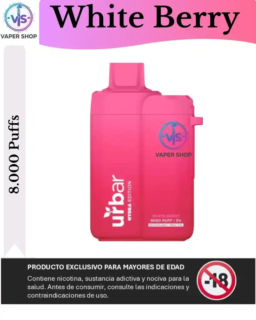 Características del Dispositivo (Urbar Hydra Edition) Basado en las especificaciones de la serie Urbar Hydra, este vaporizador destaca por su alta capacidad y durabilidad: Capacidad de caladas: Generalmente ofrece hasta 8,000 puffs (caladas). Existe también una versión más potente de 15,000 puffs. Batería: Cuenta con una batería interna de 650mAh (en el modelo de 8,000 puffs) que es recargable mediante un puerto USB tipo C. Tecnología: Utiliza una bobina de malla (Mesh Coil) diseñada para mantener la intensidad del sabor desde la primera hasta la última calada. Contenido de nicotina: Suele presentarse con una concentración del 5% (50mg) de sales de nicotina.