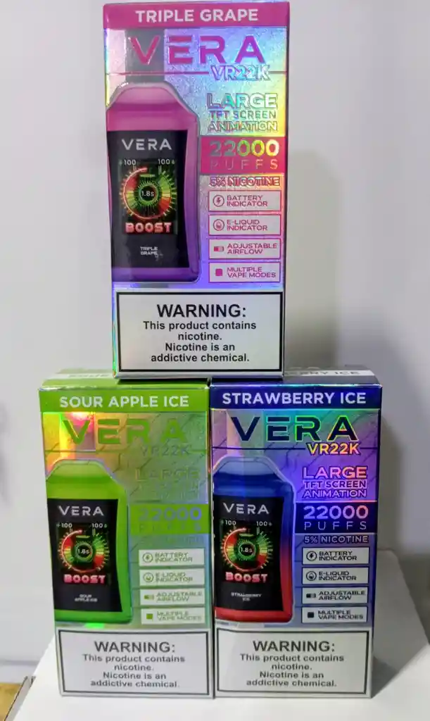 Vaper Vera de 22.000 Usos, sabores de existencia (Triple Uva, Fresa Mentolada, Manzana Verde Mentolada y Doble Menta *Producto Sellado