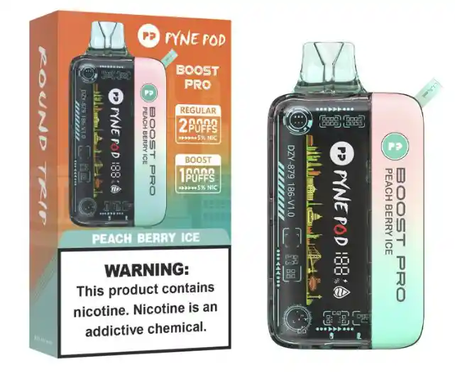El Vaper VUSE Pyne Pod Boost Pro Peach Berry Ice está pensado para quienes buscan máxima duración, potencia ajustable y un sabor fresco y frutal en un solo dispositivo. Gracias a su doble modo puedes elegir cómo vapear: Modo Regular para sesiones largas y suaves Modo Boost para un golpe más intenso y mayor vapor El sabor Peach Berry Ice combina la dulzura del durazno, frutos rojos y un toque ice refrescante, logrando una experiencia equilibrada, fresca y muy agradable, ideal para vapear todo el día. Durazno dulce y jugoso Frutos rojos suaves Sensación ice refrescante Dulzor balanceado No empalaga Hasta 20.000 puffs 5% nicotina Doble modo: Regular / Boost Sabor Peach Berry Ice Vape desechable premium Vapor denso y consistente Diseño moderno y tecnológico Compra ahora el Vaper VUSE Pyne Pod Boost Pro Peach Berry Ice y disfruta potencia, frescura y duración extrema. Alta demanda. Stock limitado.