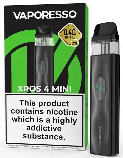 Vaporizador recargable de liquido Vaporesso Xros 4 Mini No incluye liquido, en nuestra tienda Vapoz en Rappi encuentras liquidos. Bateria 1000mAh Carga USB-C Incluye: Un Pod, cable cargador USB-C Color: Negro