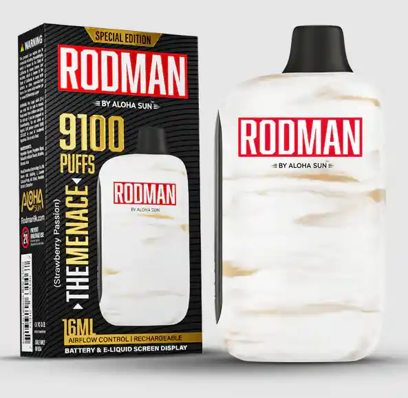 Presentamos "The Menace", un vape de nicotina de edición especial de Dennis Rodman, diseñado para dejar una huella imborrable en tu experiencia gustativa con su cautivador sabor Strawberry Passion. Al igual que la presencia disruptiva de Dennis en la cancha, "The Menace" rompe con lo establecido, infundiendo tus sentidos con una audaz fusión de fresa y maracuyá.