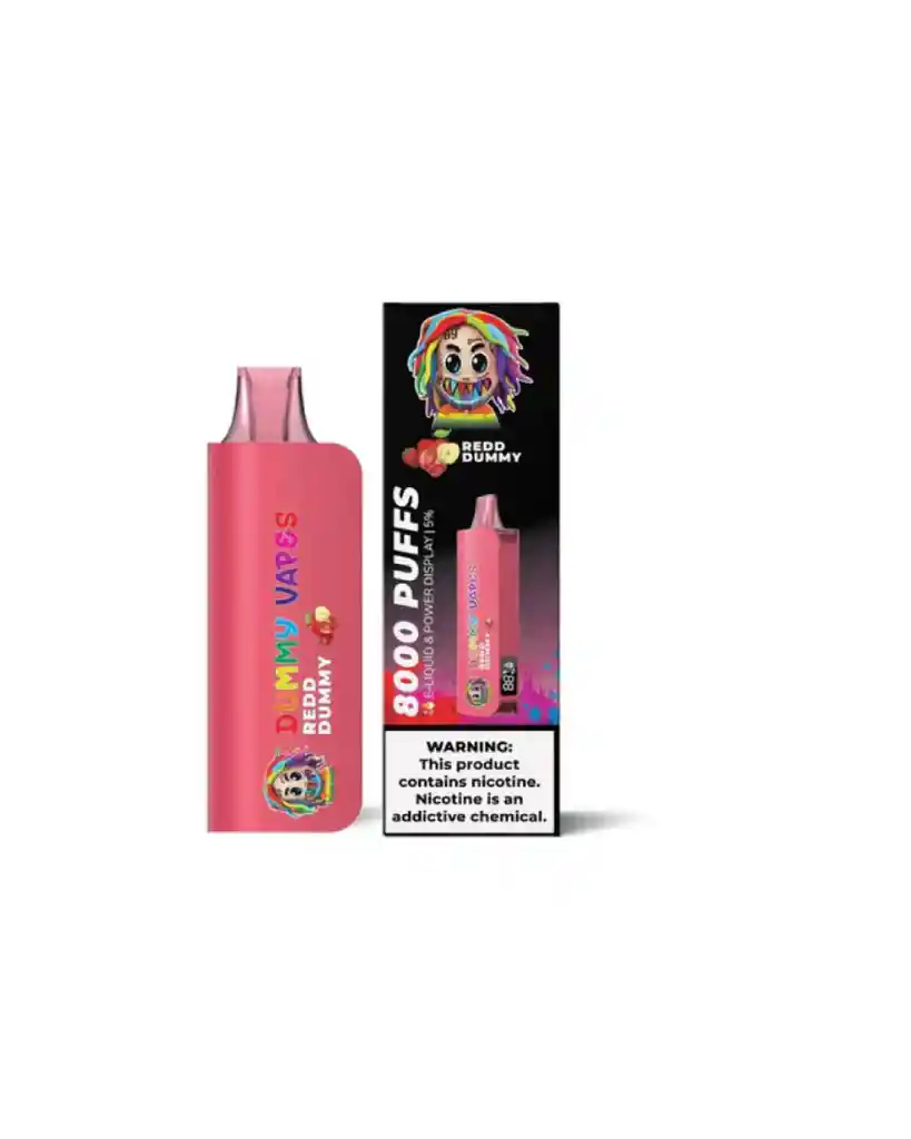 • Vaper desechable con sabor a redd dummy. • Pantalla que muestra el estado de la batería y el nivel de la esencia. • Puffs 8000. • Nicotina 5%. • Batería recargable.