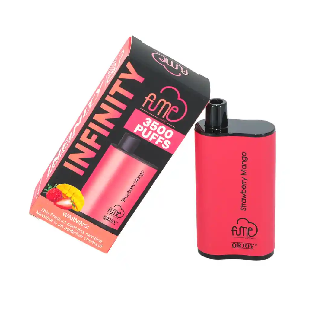Vape vapeador vaporizador Fume Infinity fresa mango 3500 puffs Prohibida la venta a menores de edad. Producto nocivo para la salud que contiene nicotina, sustancia altamente adictiva. Antes de consumir consulte las indicaciones y contraindicaciones de uso