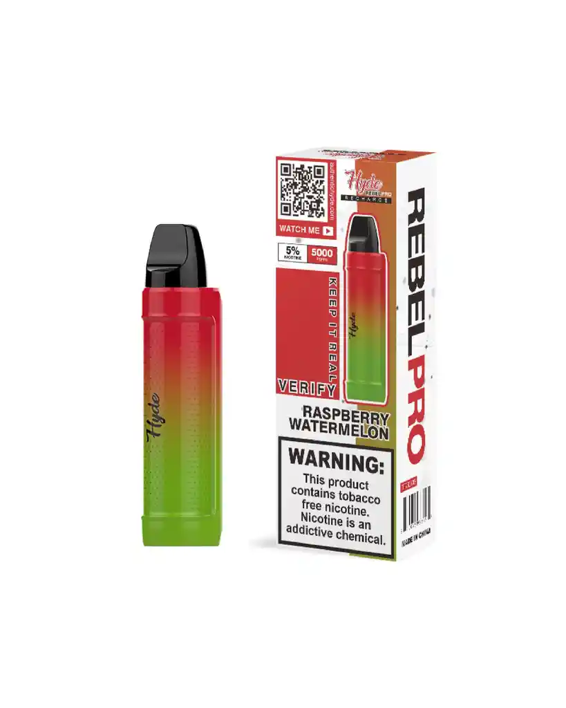 • Vaper desechable con sabor a sandía frambuesa. • Puffs 5000. • Nicotina 5%. • Bateria recargable.