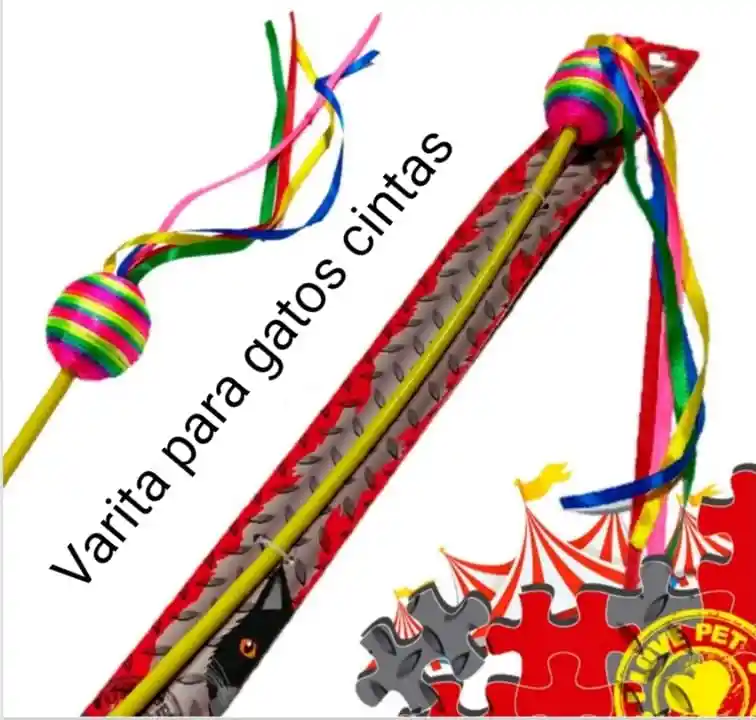 Este linda y colorida vara dara paso a horas de entretención con tu felino, ya que sus curiosas cintas coloridas despertaran su instinto de caza y fomentaran el juego y la actividad física la cual es de suma importancia para la salud y bienestar de estos peluditos.
