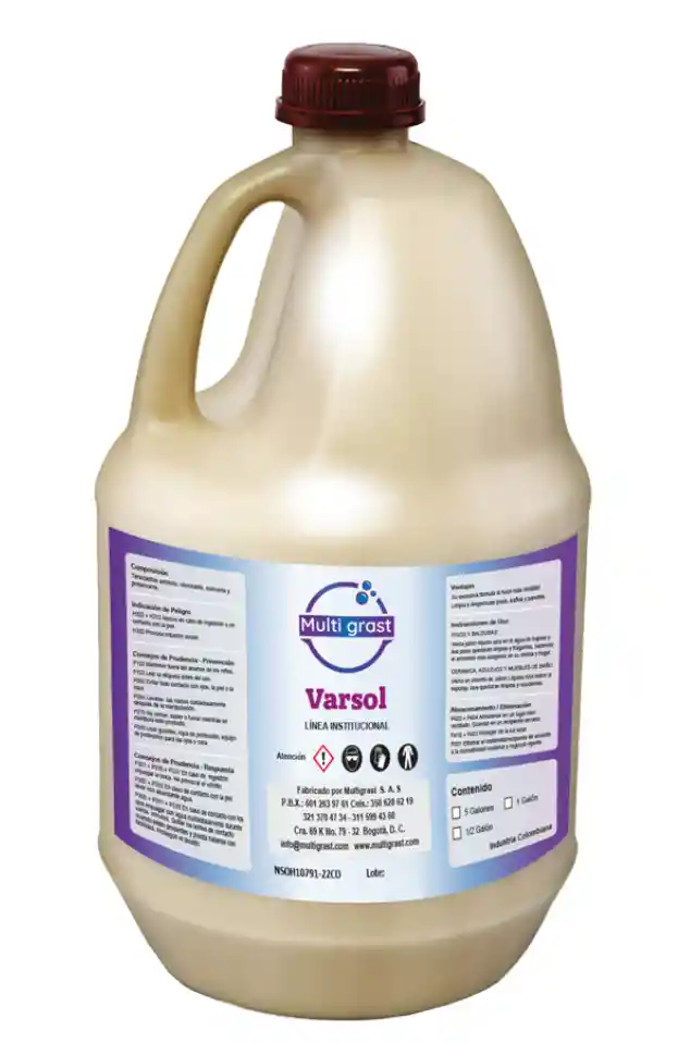 El Varsol Multigrast tiene una fórmula química que es perfecta para limpiar, desengrasar y diluir pintura u otros tintes difíciles de remover. Recomendaciones: Producto corrosivo, emplear guantes y aplicar en sitios con buena ventilación. Observaciones: El artículo aquí expuesto es orientativo. La apariencia puede variar debido al material del envase y/o a la composición del producto. Precauciones: No ingerir, evite el contacto con los ojos. Manténgase fuera del alcance de los niños y mascotas.