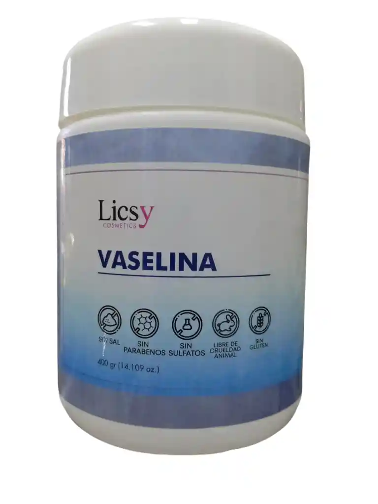 Vaselina cosmetica, emoliente, libre de sal, parabenos, sulfatos, sin gluten