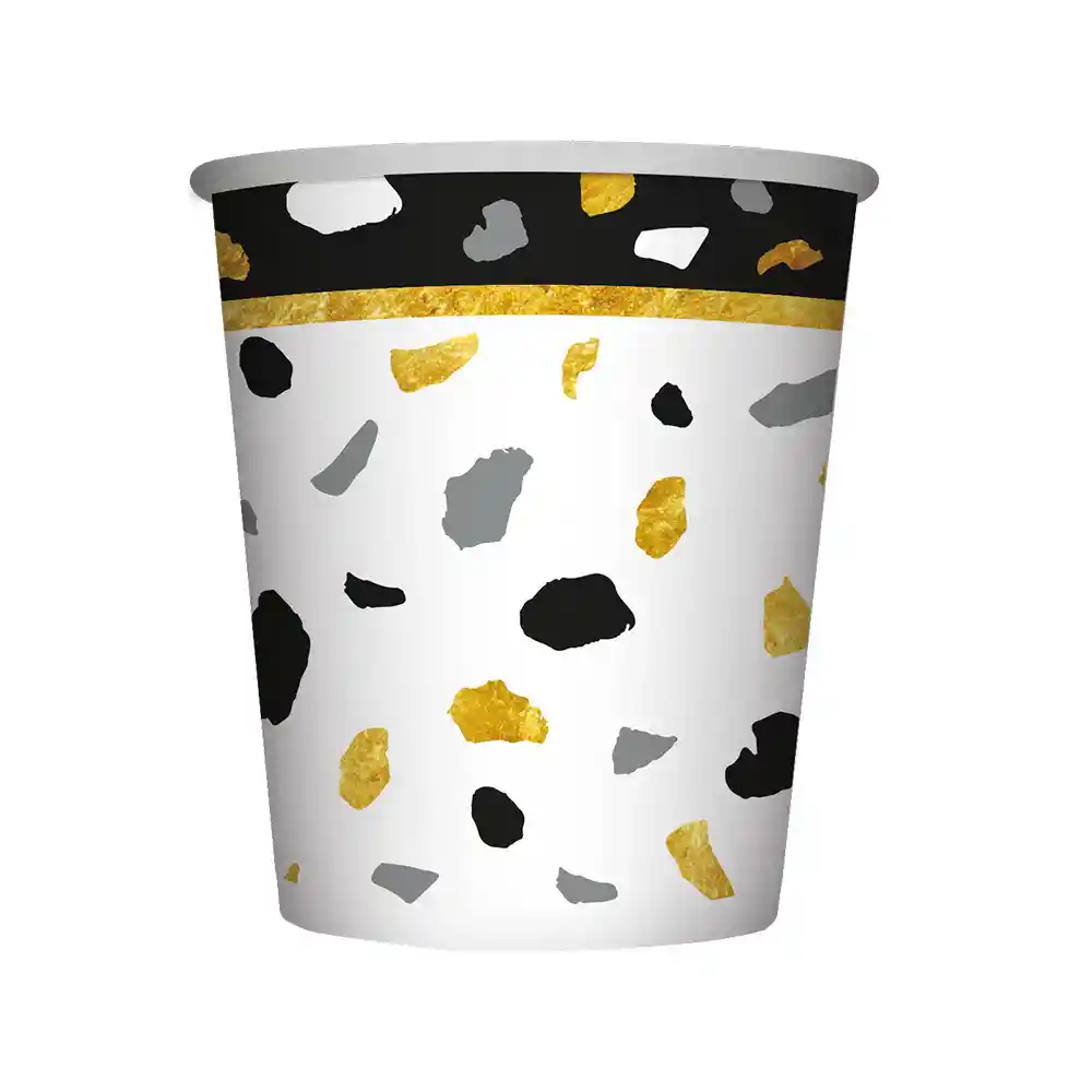 Vaso 9 Oz Terrazo Dorado Negro X 8 Unidades Sempertex