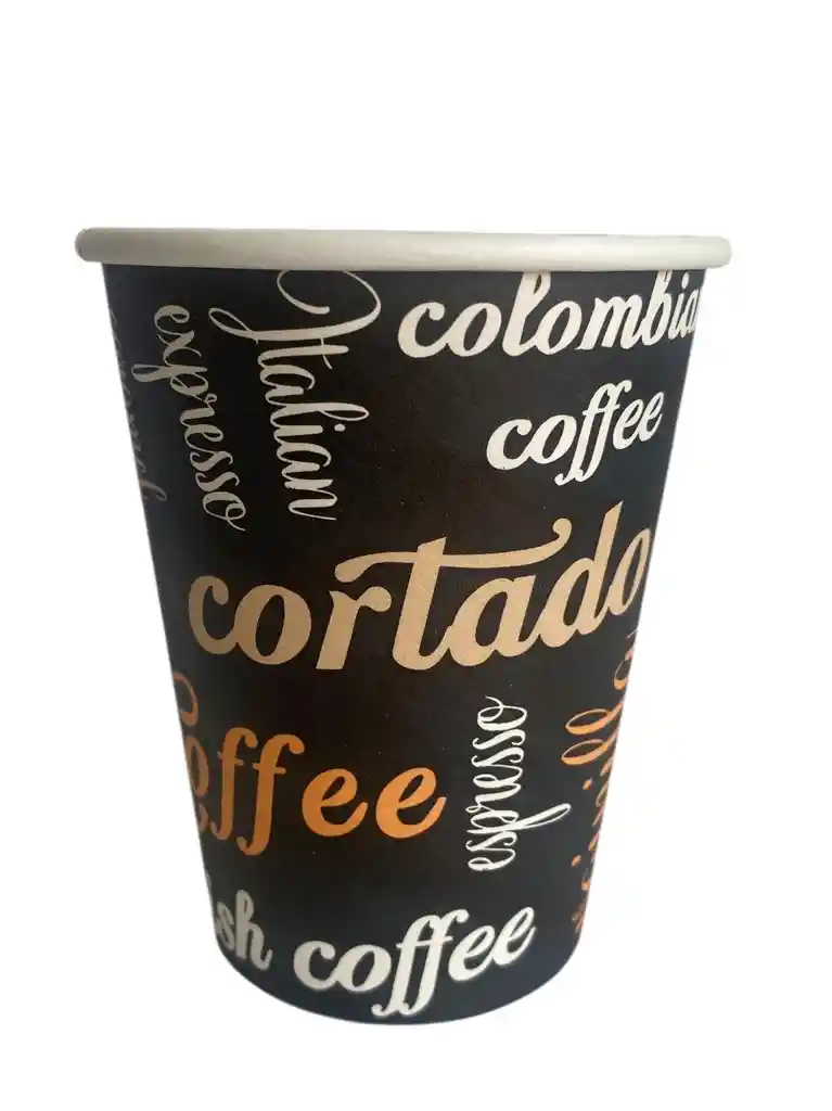 VASO CARTÓN 9 ONZAS ALTURA 9 CMS BASE 5 CMS BOCA 7 CMS PAQUETE X 50 UNDS BEBIDAS CALIENTES O FRIAS