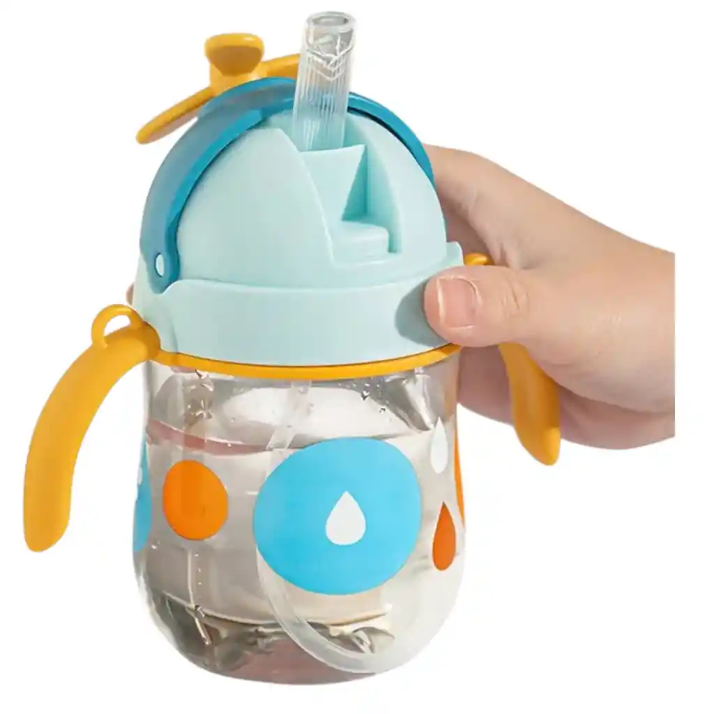 Vaso con pitillo antiderrame con pesa y correa Diseñado para acompañar a los niños en cada etapa de su desarrollo, este vaso es ideal para evitar derrames y fomentar la independencia al beber. Características principales: Pitillo con sistema de peso que permite tomar líquido en cualquier ángulo. Tecnología antiderrame que evita fugas accidentales. Correa ajustable para llevar fácilmente a donde sea. Agarraderas laterales ergonómicas que facilitan el uso en manos pequeñas. Fabricado en materiales seguros, libre de BPA. Fácil de desmontar y lavar. Colores disponibles: opción para niña y niño Capacidad: adecuada para el uso diario desde los 6 meses en adelante Una vez realices la compra nos comunicaremos para saber que diseño deseas para brindarte un mejor servicio