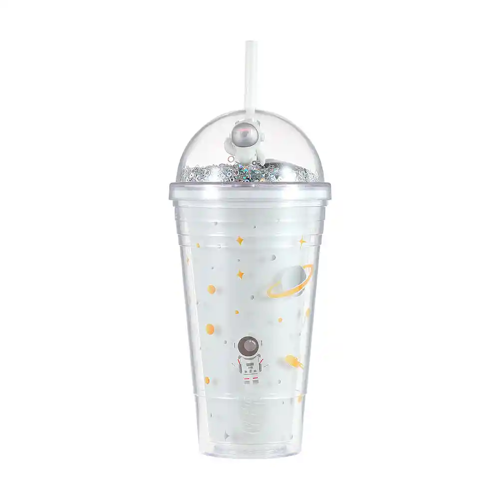 Vaso Con Pitillo De Dos Capas, Plastico Star Series, 420 Ml, Blanco, Capacidad de 420 ml. | No debe usarse en microondas. | Incluye popote para beber directamente. | Ideal para regalo. | Varios modelos disponibles.