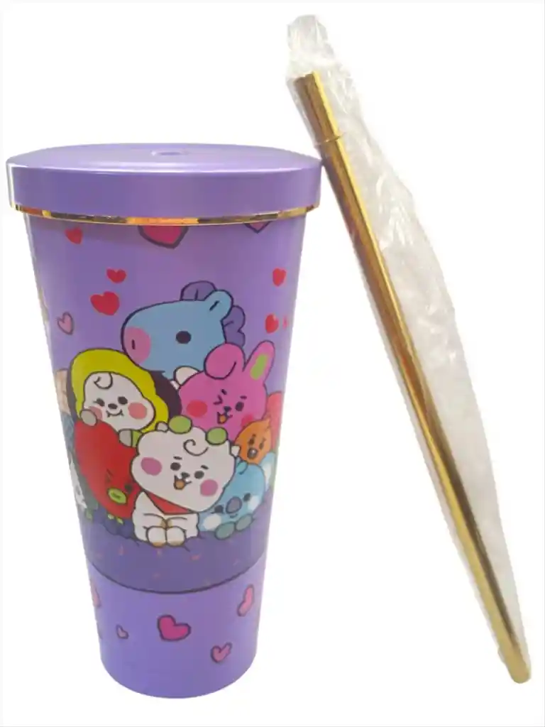 VASO DE BT21 EN ACERO CON PITILLO Y PLUMILLA