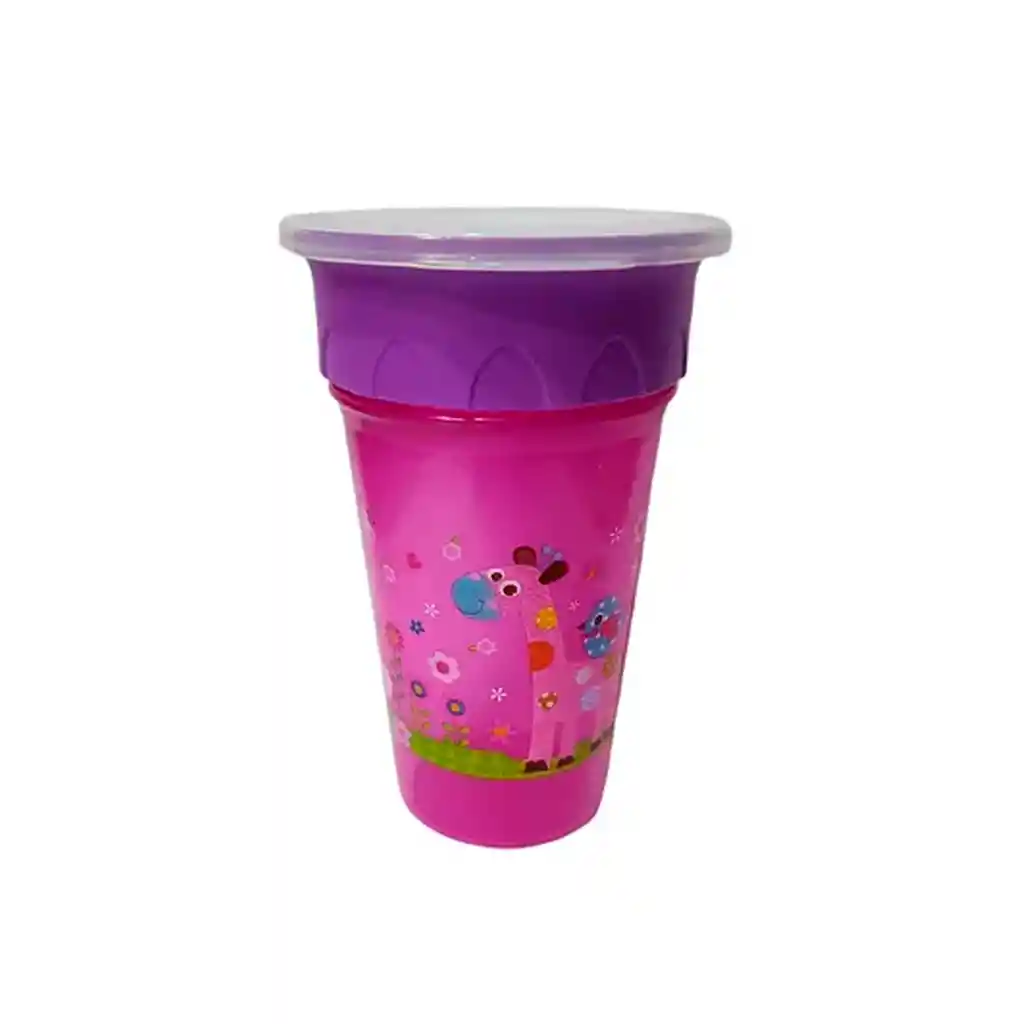 Vaso 360° de la marca Infan-Tec con tres colores y diseños. Características: Cierre seguro para evitar el derrame del contenido. Cuenta con un sistema antiderrames 360°