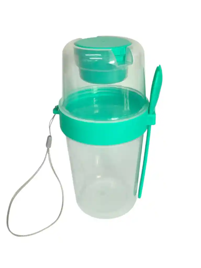 El Vaso De Parfait Yogurt Cereal Con Tapa es el complemento ideal para quienes buscan disfrutar de un desayuno saludable y práctico. Con una capacidad de 500 mL, su diseño cilíndrico permite una fácil manipulación y almacenamiento. Fabricado en plástico de alta calidad, este recipiente es hermético, asegurando que tus alimentos se mantengan frescos y en perfectas condiciones. Su tapa a rosca proporciona un cierre seguro, evitando derrames y facilitando el transporte. Este vaso es perfecto para llevar tus cereales y yogur a cualquier lugar, ya sea al trabajo, la universidad o durante un viaje. Su tamaño compacto, con 18 cm de altura y 10 cm de diámetro, lo hace ideal para cualquier mochila o bolso. Aunque no es apto para microondas ni lavavajillas, su diseño funcional y práctico lo convierte en una opción versátil para el día a día. Disfruta de tus comidas de manera ordenada y estilizada con este vaso, que también incluye un portacereales, permitiéndote llevar tus ingredientes favoritos de forma separada y lista para mezclar. Haz de tus desayunos una experiencia más placentera y organizada con el Vaso De Parfait Yogurt Cereal Con Tapa, un producto que combina funcionalidad y diseño en un solo recipiente. Ideal para quienes valoran la comodidad y la calidad en su alimentación diaria.