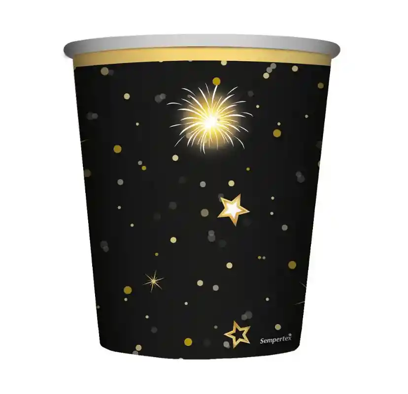 Celebra la llegada del nuevo año con estilo. Nuestro vaso Feliz Año presenta colores elegantes y sofisticados que transforman cada brindis en un momento especial. Perfecto para compartir con amigos y familia, este vaso combina diseño moderno con la calidez de las festividades. Haz que tus celebraciones sean memorables con un accesorio que refleja tu buen gusto y alegría por los nuevos comienzos. Material de carton