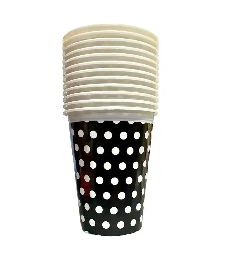 Vaso Desechable Plastico Negro Puntos Blancos Oz X 12 Und