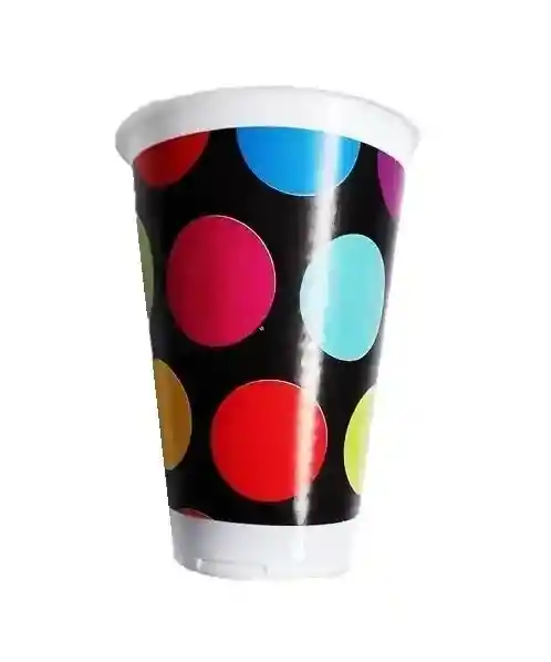 VASO DESECHABLE PLASTICO POLKA PUNTOS DE COLORES 6 OZ X 12 UNIDADES