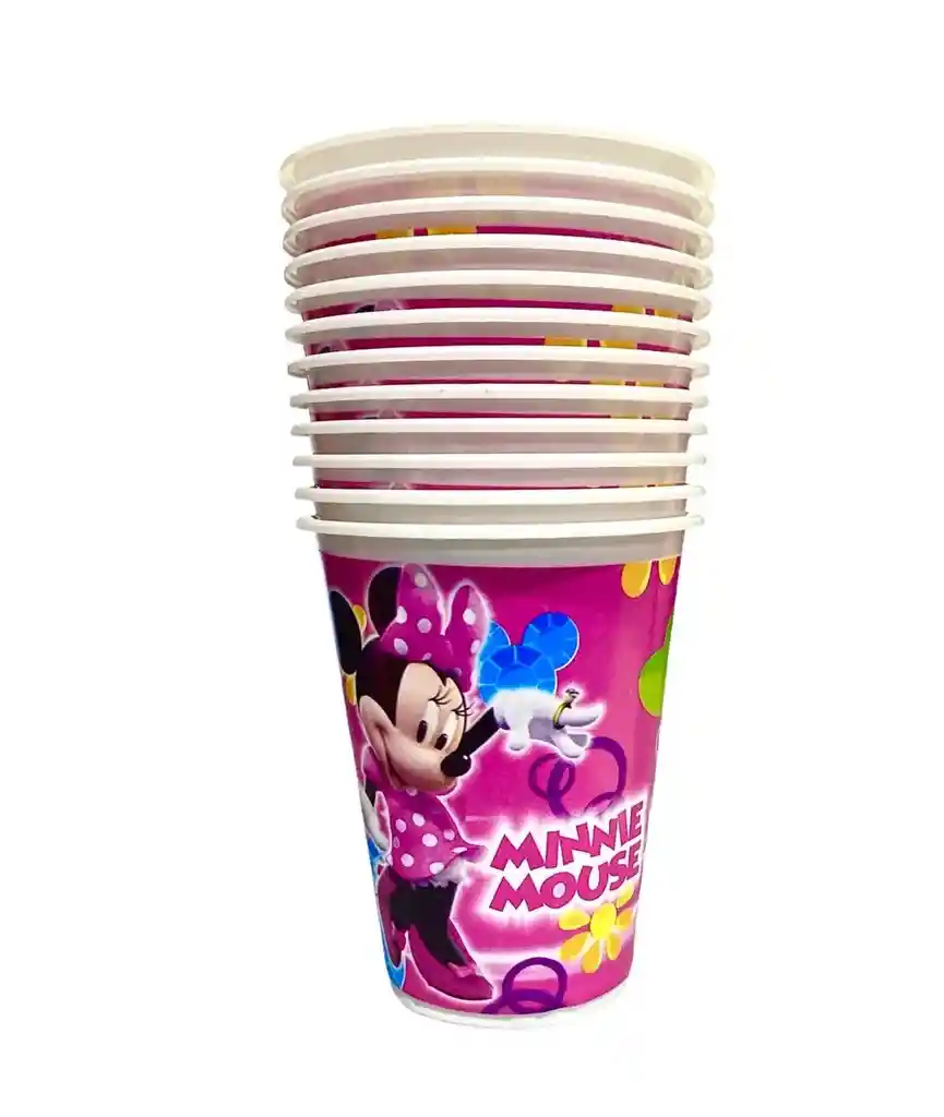 VASO DESECHABLE PLASTICO NIÑA MINNIE 6 OZ X 12 UNIDADES