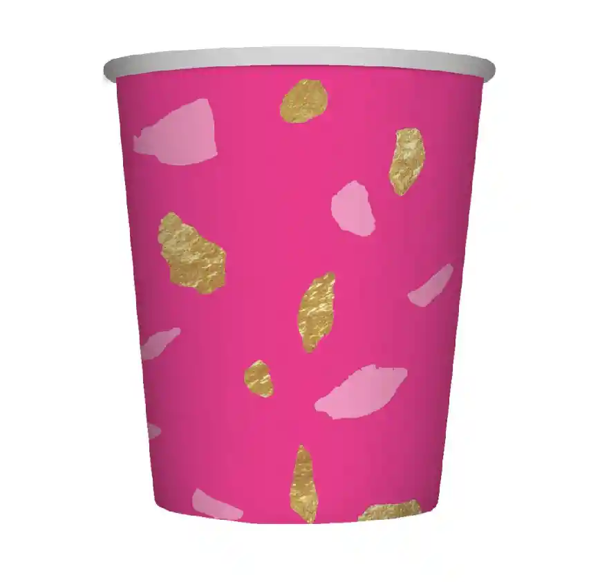 Vaso Desechable Terrazo Fucsia De Carton 9 Oz X 8 Sempertex