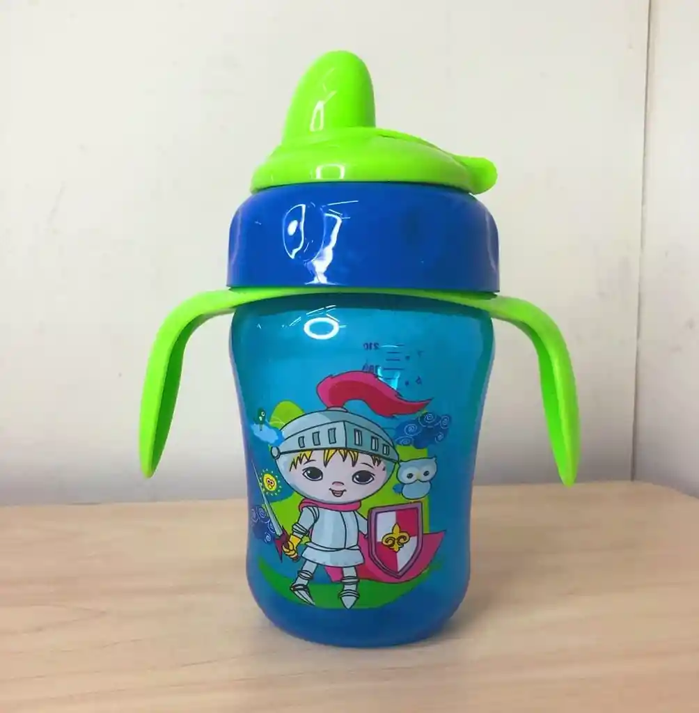 Vaso entrenador antiderrame 210 ml ó 7 oz de capacidad, de hermoso diseño. Con asas para facilitar su agarre y para mayor comodidad del bebé. Lave el vaso y los accesorios con agua tibia con jabón. Presione el chupo para asegurarse que cualquier residuo de alimento fue removido. Esterilice sumergiendo en una solución apta. CARACTERISTICAS -Medida: Altura 16cm , Diámetro 21cm -Color: Rosado, Azul De chupo suave para una sensación más agradable y real para su bebé mientras se alimenta. Hecho de materiales seguros y de excelente calidad. De uso seguro para contacto con alimentos y bebidas, libre de BPA
