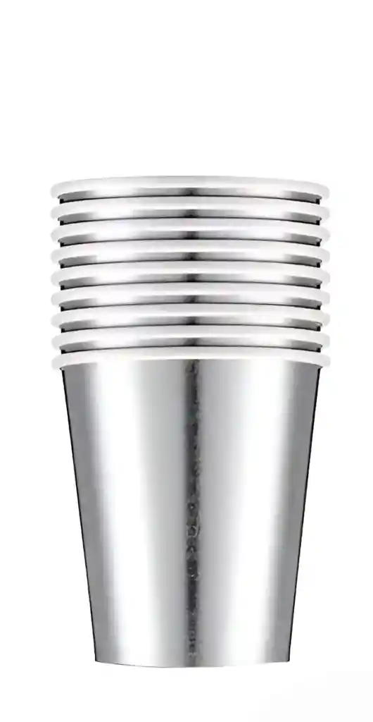 Vaso Cartón Metalizado color plateado x 10 Pcs, para cumpleaños, celebraciones