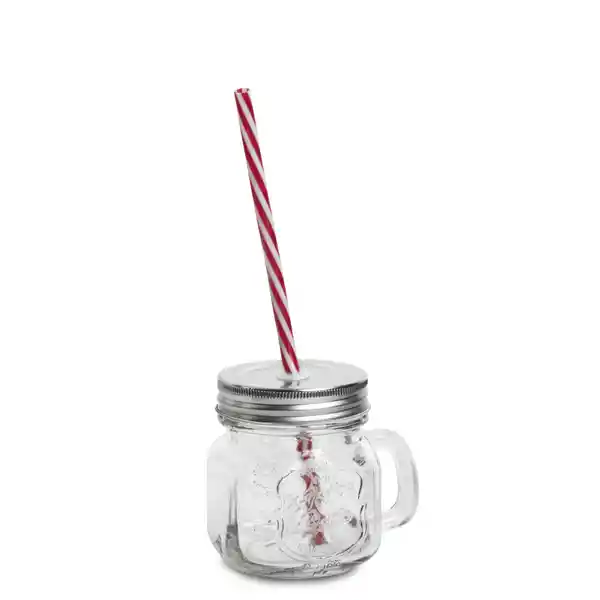 Vaso en Vidrio de 240 mL de la Colección Mason es Una Solución Práctica y Segura Cuenta Con Pitillo Para Bebidas Refrescantes. País de Origen: China. Importador: Distribuidora Matec S. A. S