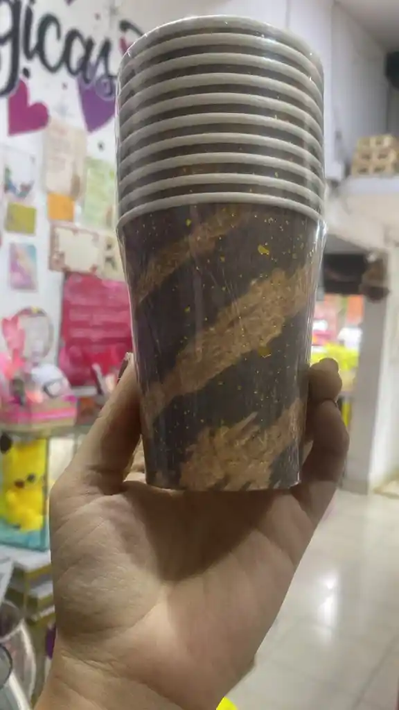 10 Vasos Negro con estampado Dorado