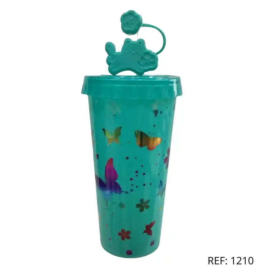 Vaso con mariposas y tapa con diseño de gatito, divertido y práctico