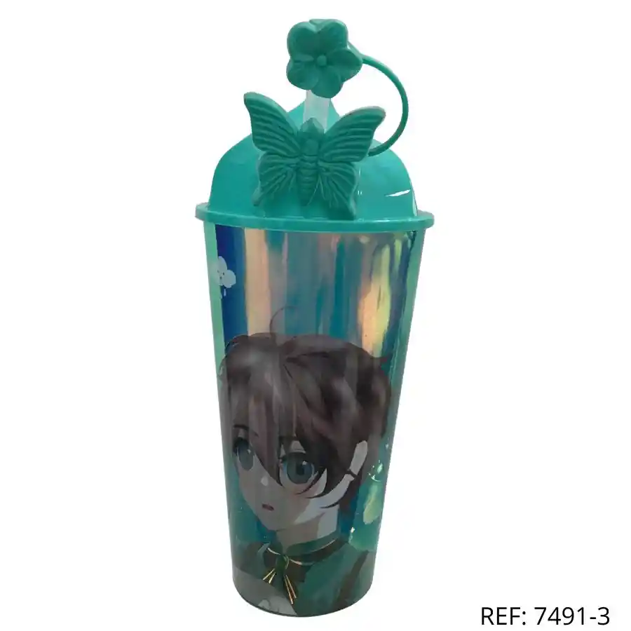 Vaso anime niño con tapa decorativa, perfecto para fans del manga.