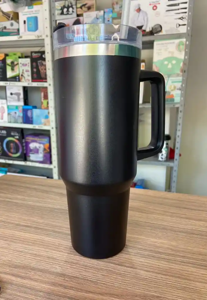 •Capacidad: Aproximadamente 900 ml – 1000 ml •Material: Interior de acero inoxidable, exterior metálico con acabado mate •Aislamiento: Doble pared al vacío •Conservación de temperatura: •Mantiene bebidas calientes y frías por varias horas •Color: Morado y negro •Tapa: Plástica transparente con cierre deslizante (anti-derrames)