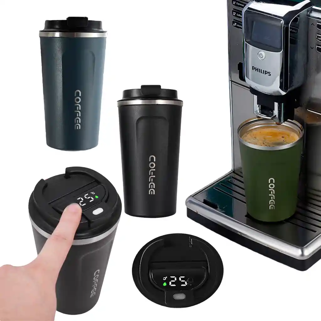 NUEVO DISEÑO 2023 CON MEDIDOR DE TEMPERATURA DIGITAL DESCRIPCIÓN DEL PRODUCTO -MODELO: COFFEE - ACERO INOXIDABLE: Gracias a su composición con paredes aisladas al vacío permite mantener la temperatura de las bebidas tanto frías (6 horas) como calientes ( 6 horas). - SELLO HERMETICO : Dispone de una tapa hermetica de correr - RESISTENTE Y DURADERO: Tapa de plástico con nuevos polímeros para mayor durabilidad y cuerpo de acero inoxidable que proporciona máxima resistencia. - LIGERO Y FÁCIL DE LLEVAR: Material liviano y diseño ergonómico. Adicionalmente con sus nuevas paredes interiores que garantizan un limpiado fácil y efectivo. producto disponible para envio inmediato Colores disponibles : Negro, Rosado, Verde militar y Azul oscuro ( no olvides elegir el color de tu preferencia eligiendo la variante adecuada ) «« CARACTERÍSTICAS PRINCIPALES »» Pared doble de Acero Inoxidable Aislamiento de calor o frio Capacidad de 510 ml A prueba de fugas «« DIMENSIONES »» Alto: 17 cm Diámetro: 9 cm