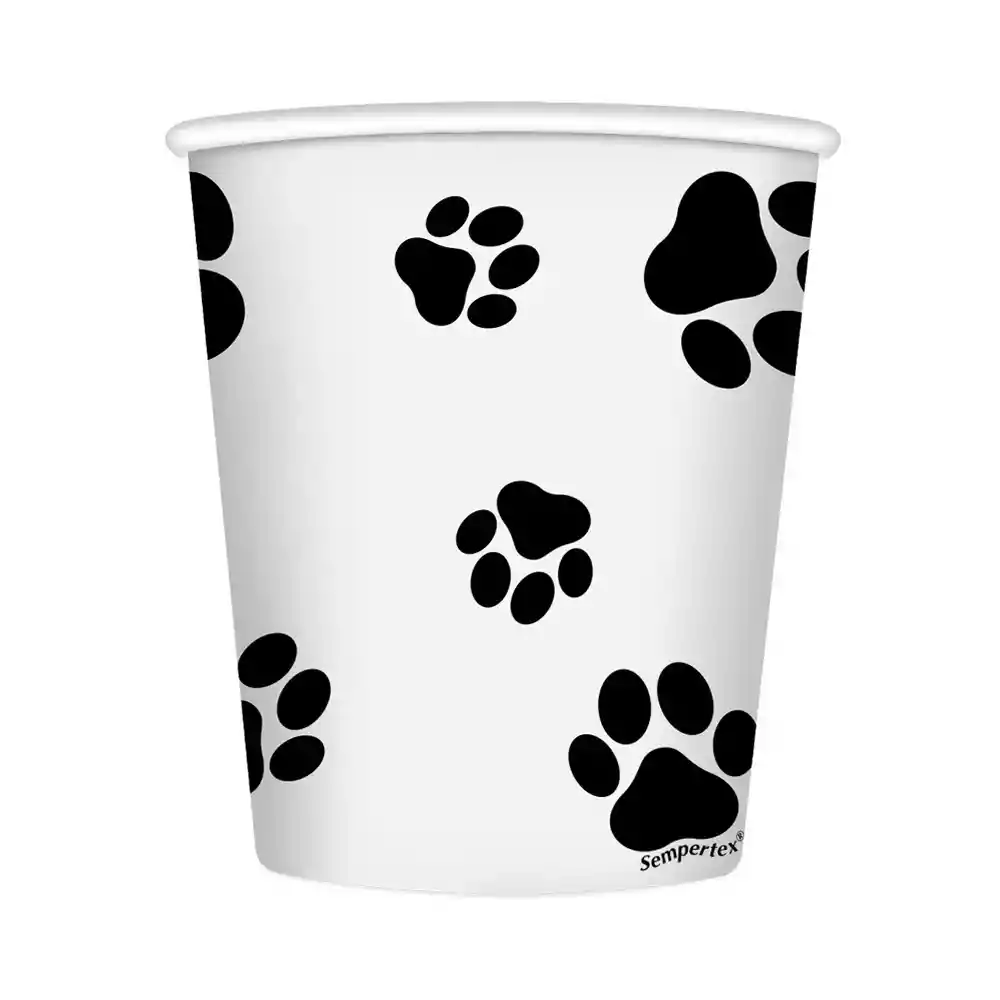 Paquete vasos x 8 de 9oz color blanco con estampado de huellas Vasos para fiesta Vasos desechables de carton