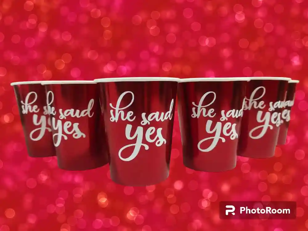 10 vasos para despedia de Soltera Rojo metalizado SHE SAID YES 10 ml Vasos de Carton Disponiblidad inmeidta