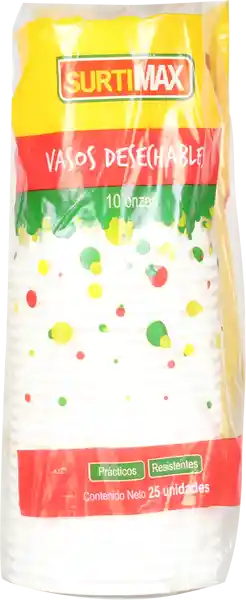 Vasos desechables transparentes Surtimax. Bolsa por 25 unidades de 10 onzas cada uno. Packing: Bolsa