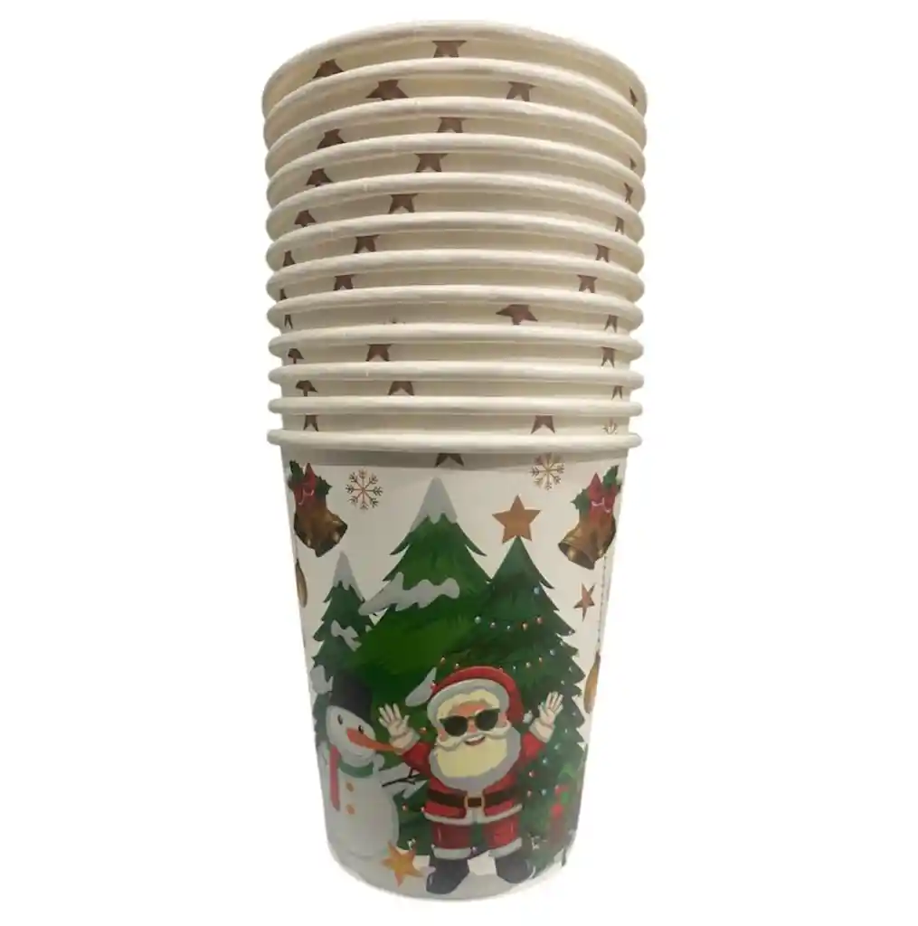 VASOS NAVIDEÑOS EN CARTÓN DISEÑO BLANCO ARBOL NOEL PAQUETE X 12 UNDS