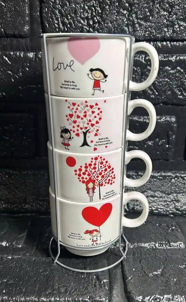 VASOS POCILLO AMOR SET X4 CON SOPORTE METALICO COD.4717