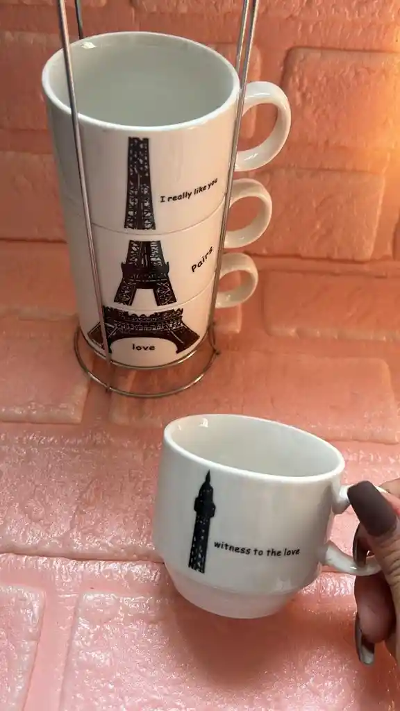 VASOS / POCILLO TORRE EIFFEL SET X4 CON SOPORTE METALICO COD.1583-3