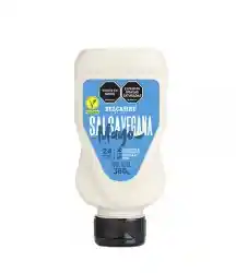 Salsa vegana imitación mayonesa (vegana, sin huevo, sin gluten, sin colorantes artificiales) Ingredientes: aceite refinado (soya y/o girasol y/o canola), agua, vinagre filtrado, azúcar, almidón modificado de yuca y/o maíz y/o papa (espesante) dextrosa, aroma natural, proteína de soya y/o arveja, sal, glucono delta lactona (acidulante), harina de mostaza, goma xanthan, (estabilizante), ácidos orgánicos (regulador de acidez), ácido fosfórico (acidulante), resaltador de sabor (cloruro de potasio y extracto de levadura), antioxidante natural (extracto de romero), especias y condimentos, cálcico disódico E.D.T.A. (secuestrante), aroma natural a mayonesa. Contiene: mostaza y soya. Manufacturado en una planta que procesa soya, nuez moscada y huevo. Refrigerar después de abierto y consumir en el menor tiempo posible.