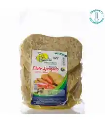 Embutido de vegetales imitación filete. Ideal para preparar en plancha, como proteína vegetal en platos fuertes y otras preparaciones vegetarianas como arroces, pinchos y picadas. Preparación: calentar en poco aceite de oliva o a la plancha por 1 minuto. Ingredientes: proteína de soya, glúten (proteína de trigo), quinua, proteína de arveja, fibra de bambú, aceite de girasol, ajo, especias naturales (laurel, oregano, tomillo), concentrado de hortalizas, (perejil, pimentón, apio, cilantro). Batido: (agua, harina de quinua, almidón, especias) Apanado: (harina de arroz, hojuelas de quinua, hojuela de avena, especias), regulador de ph vegetal (lactato de sodio E325), agua, sal. Contiene gluten y soya, libre de glutamato monosódico.