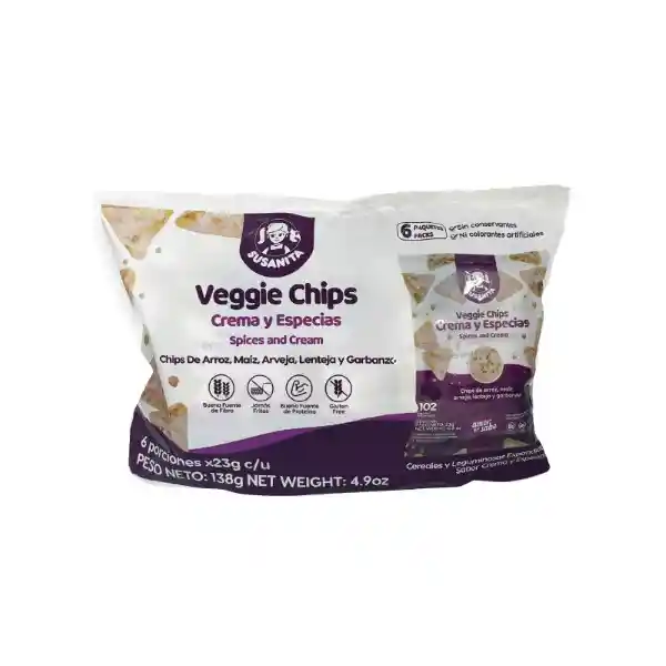 Veggie chips SUSANITA crema y especias 6 unds x23 g c/u