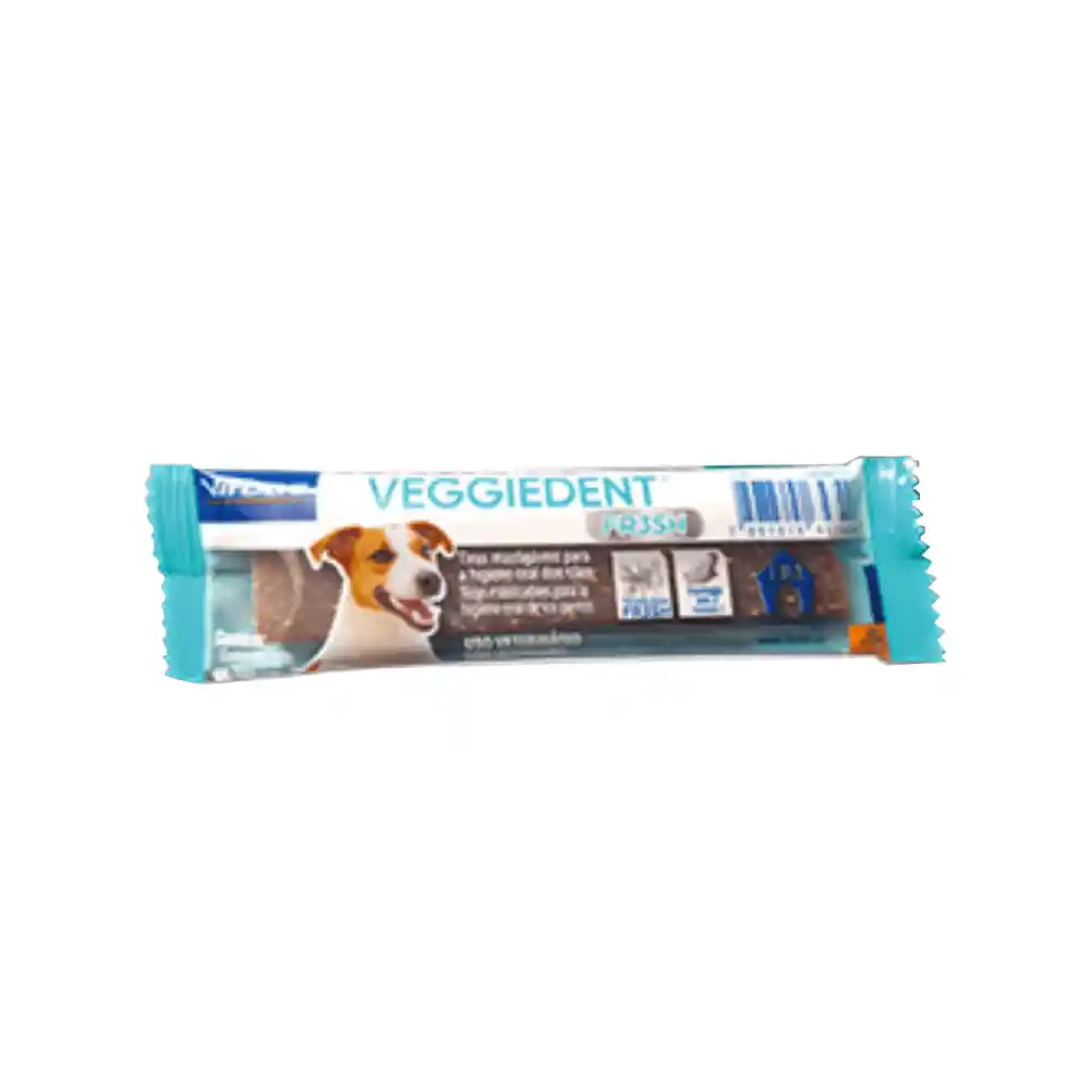 Los premios para el control del sarro para perros brindan un aliento fresco y más. También tienen un gran sabor que les encantará a tu perro. Indicaciones: Las tiras masticables VEGGIEDENT FRESH son altamente palatables y se indican para la higiene bucal de los perros. Su exclusivo formato Z fue especialmente desarrollado para facilitar el agarre y optimizar la acción mecánica de limpieza durante la masticación. Siga siempre la orientación del Médico Veterinario. Dosis y vía de administración: Ofrecer al perro una tira masticable diariamente o de acuerdo a las indicaciones del Médico Veterinario.Agua potable y fresca debe estar siempre disponible para la mascota. Small: adecuado para perro 5 - 10 kg