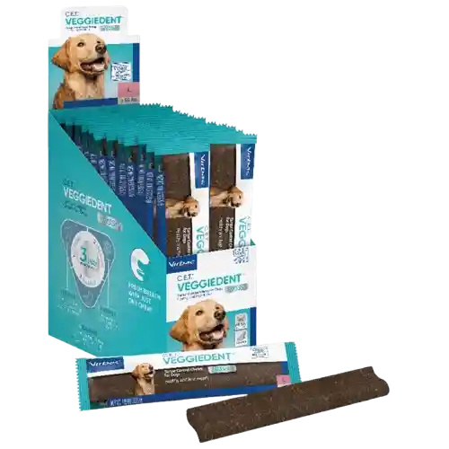 El snack dental vegetariano VeggieDent Fresh es una lámina masticable que actúa combatiendo el sarro y evitando la formación de la placa.
