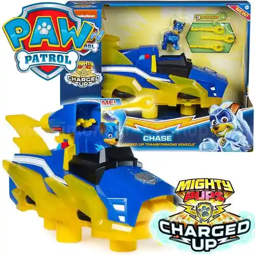 Vehículo de lujo Chase Paw Patrol auténtico Original Spin Master. Pulsa el botón para transformar el vehículo de Chase en modo hover. Las ruedas se levantan, revelando un lanzador de proyectiles y ruedas giratorias que le permiten desplazarse en cualquier dirección. LUCES Y SONIDOS: Los detalles del rayo amarillo translúcido del vehículo de Chase se iluminan cada vez que pulsas el botón. Escucha los efectos de sonido y las frases cargadas directamente de la serie. LANZADOR DE PROYECTILES Y RED: ¡Crea tus propias misiones cargadas con Chase! Carga y lanza los 3 proyectiles (incluidos) y pulsa el botón de la parte delantera del vehículo para utilizar la red de rescate. INCLUYE LA FIGURA DE CHASE: ¡Coloca la exclusiva figura de Charged Up Chase al volante y salva el día! Incluye: 1 vehículo transformable Charged Up, 1 figura exclusiva de Chase, 3 proyectiles, 1 guía de instrucciones