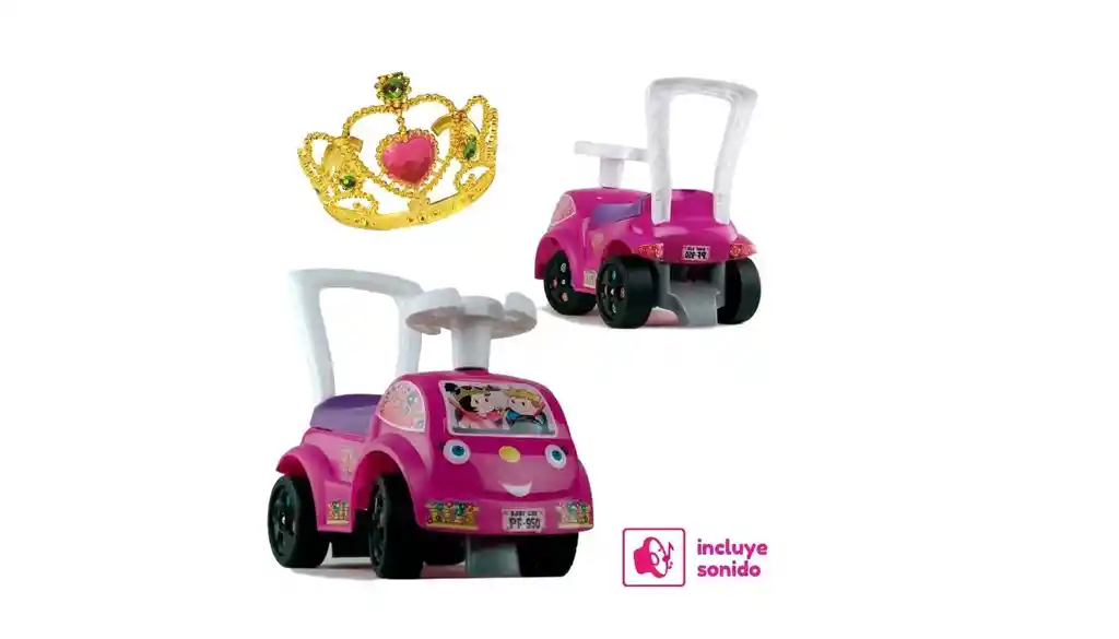 ¡Qué se sienta el amor por nuestra princesa! Este precioso carro le dará a tú hija entretenimiento. Su estilo es único y fácil de transportar. Las niñas desarrollan motricidad, ayudándoles en el proceso de aprender a caminar. ¡Que comience la aventura y la diversión! - 2 en 1: Montable y andadera - Dirección giratoria con sonidos divertidos - Manija de agarre para que la pequeña se sostenga firmemente (andadera) - Compartimiento para llevar juguetes debajo del asiento - Asiento amplio y cómodo - Colores: Fucsia y morado - Única combinación de colores - Material resistente al agua - Empaque: Caja