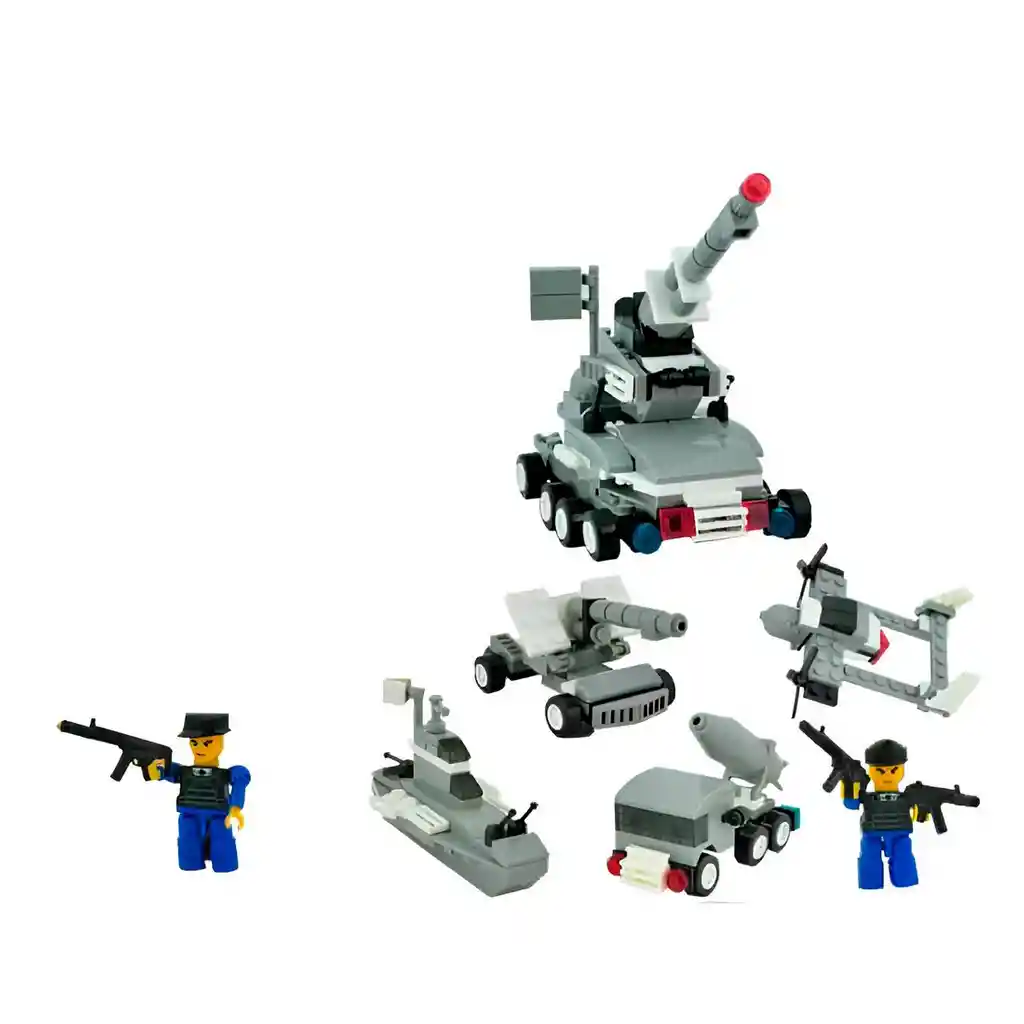 Este increíble set de bloques armables War Power es perfecto para niñas y niños amantes de la acción y la estrategia, ya que permite construir diferentes vehículos militares como tanques, barcos, aviones y camiones, además de incluir figuras articuladas con accesorios para dar vida a emocionantes misiones de combate; su diseño realista y detallado garantiza horas de diversión creativa, fomentando la imaginación, la coordinación y el trabajo en equipo mientras se recrean batallas épicas llenas de aventura. /// El precio corresponde a 4 vehículos así como se aprecia en la fotografía /// Ficha Técnica: Material: Plastico ABS Dimensiones: 14 cm x 9 cm x 4 cm Edad recomendada: + 6 años Certificado de conformidad: CS-LCO-13233-2021S2/432 Referencia: JD743 ** _Para defectos de fábrica o retractos: \_Por favor revise el producto apenas lo reciba y antes de usarlo. No aplican ley de retracto o defectos de fábrica luego de usar el producto. Se manejan máximo 5 días para reportar defectos de fábrica (por ejemplo, producto funciona mal, piezas faltantes, rotas, etc). Para hacer efectiva la devolución el producto debe devolverse con el empaque original, el cual debe estar en buen estado, incluir todos los documentos y las partes completas y sin daños.