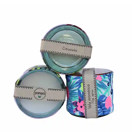 Vela aromática en envase de vidrio el diseño del forro puede variar