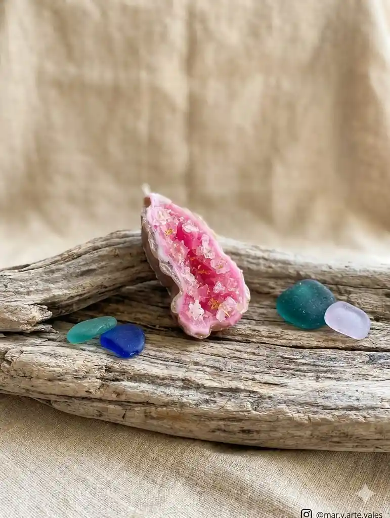 Vela aromática tipo cuarzo geoda rosa. Armoniza, energiza y aromatiza. Ideal para ambientar tu hogar, aromatizar y meditar con esta increíble pieza hecha a mano y esencias naturales.