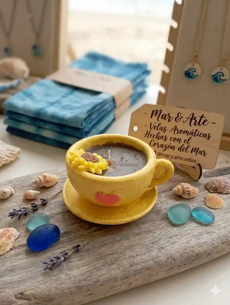 Vela aromática en soporte de cerámica tipo taza. Armoniza, energiza y aromatiza. Ideal para ambientar tu hogar, aromatizar y meditar con esta increíble pieza hecha a mano y esencias naturales.