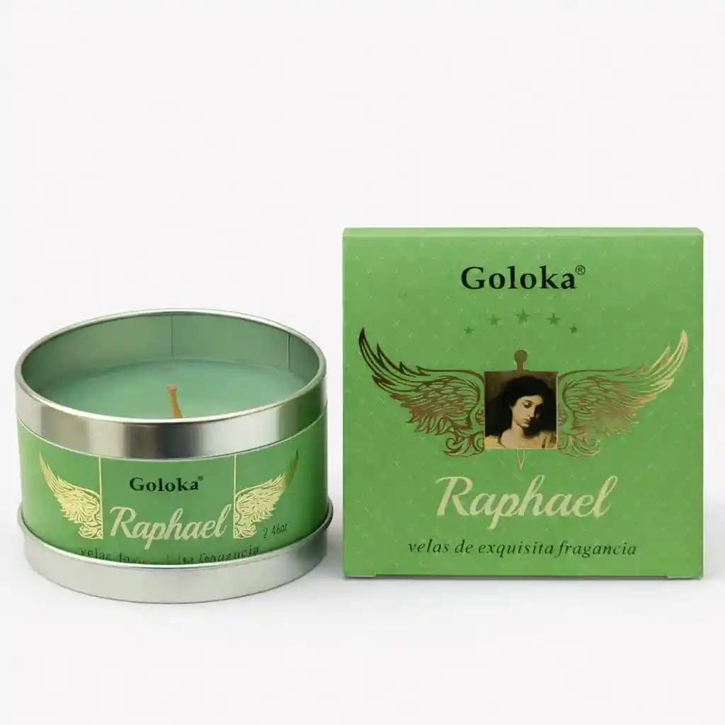 Vela aromática del Arcángel Rafael, enfocada en la sanación y el bienestar integral. Ideal para equilibrar cuerpo, mente y emociones. Tiempo de combustión: 12 horas